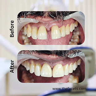 ![]() | Veneers -A thin layer of tooth coloured glass which quickly conceal many of the negative smile flaws like shape of the tooth, space between teeth, dark teeth, chipped teeth etc and provide a perfect smile |